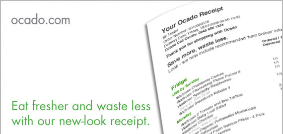Here’s a revolutionary idea for Ocado. Why not make your receipt smaller or better still email it to me as it leaves the depot so I can decide if I want to print it off.