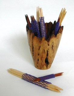 Recently I have been doing lots of knitting on DPNs for innocent and for some of my own designs. I discovered that DPNs have an uncanny knack of hiding in a pile of paper work or creeping under a basket of yarn.