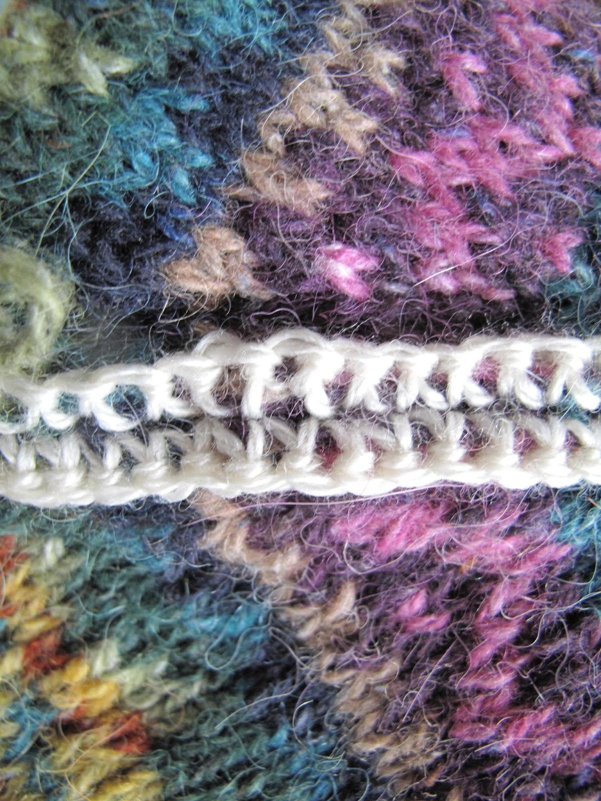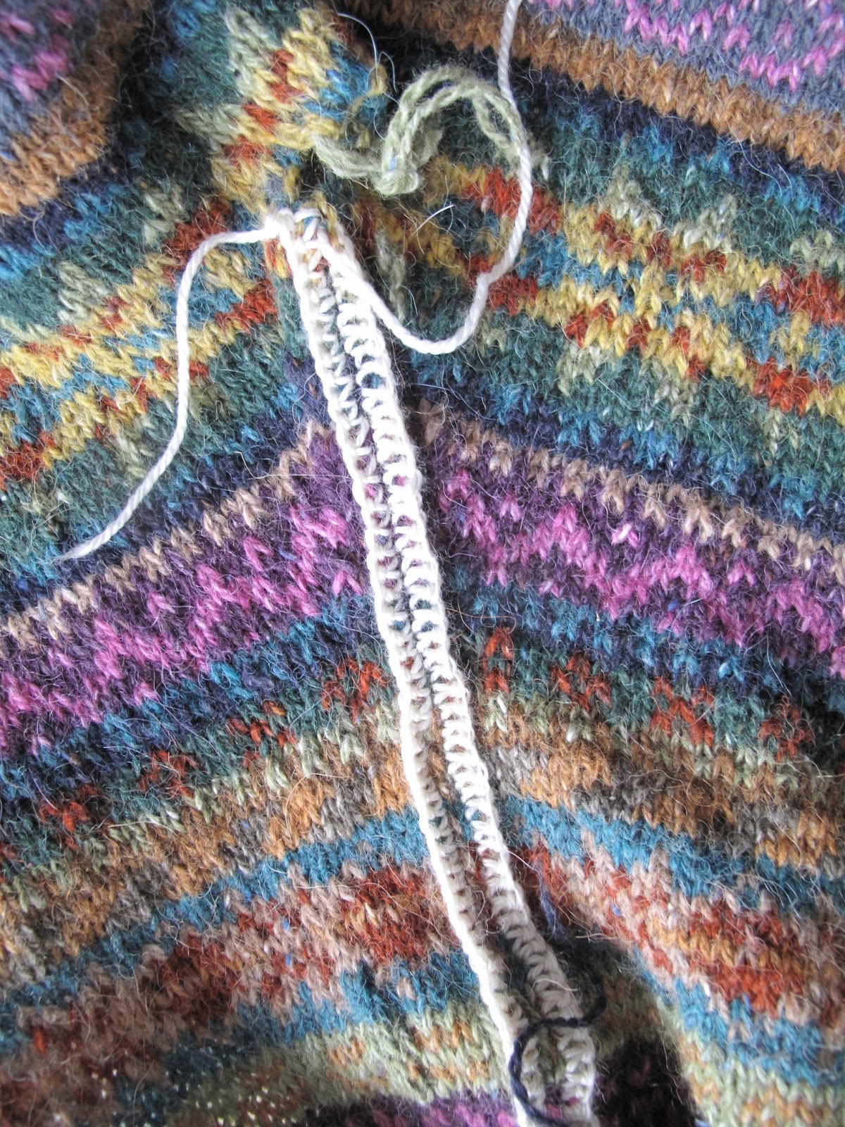 I have read the blogs, watched the videos on youtube and even seen it demonstrated but no way no how, would I have the nerve to take a pair of scissors to something so intricate. It looks gorgeous – please post more photos of the finished cardigan.