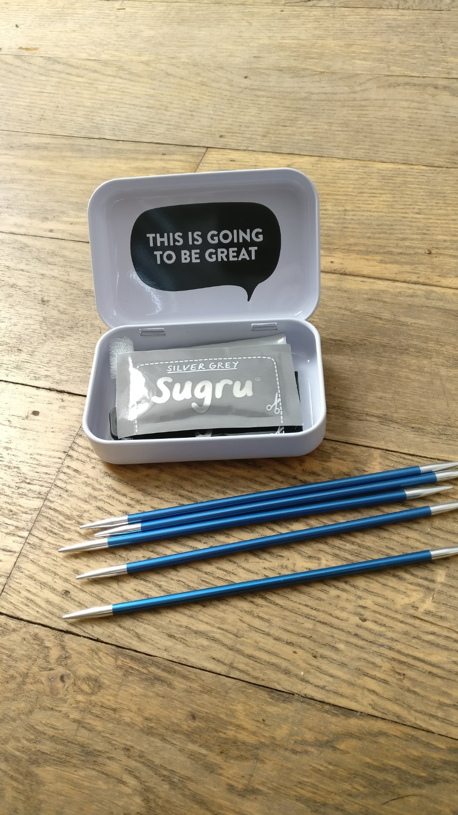 I have used it to protect charger cables, mend the handle of a pair of scissors and fix a knife blade back in to a handle. With the latest pack I thought I would try something for a knitter with lots of DPNs. Keeping my DPNs organised is always a bit of a problem. Sometime I put them in a tin or use rubber bands but I wanted something that looked a bit more tailor made.