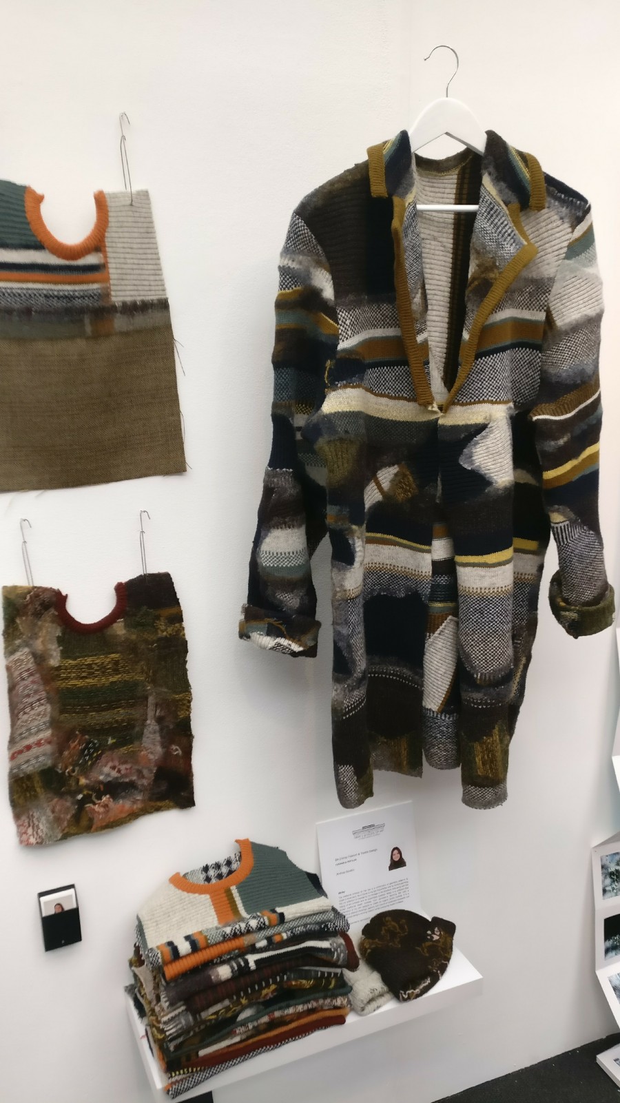 What I wasn’t optimistic about was the complete, and I mean complete, lack of hand knitting anywhere, on any stand, from any designer. In fact, when I asked some students if they had access to hand knitting as part of their course they thought I meant a knitting machine that you work by hand! One student, who confessed to being a hand knitter and was from Shetland (the home of beautiful lace), had recreated a traditional lace design on a machine.