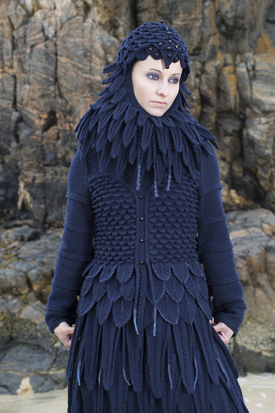 But that’s not all the Glamourie is. Alice and Jade see it as a starting point for knitters, a spring board if you like.  On the Virtual Yarns website designs are, and will continue to be developed.  The Raven wings have been evolved  in to collars or added to other garments in a feast of creative exploration.
